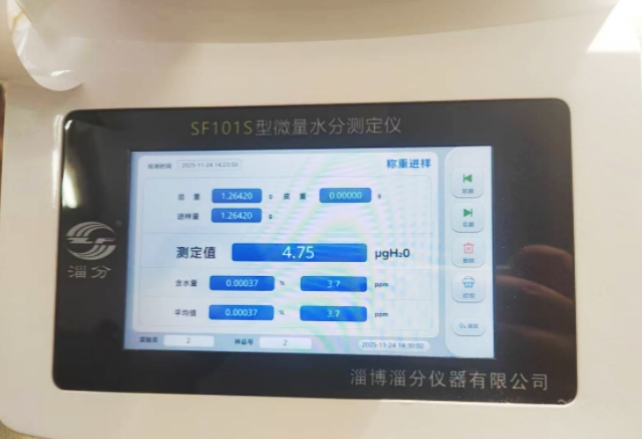 五、用戶實測反饋:樣品水分含量低于5PPM,用戶檢測兩次測量值均是3.7PPM,滿足用戶精度要求。